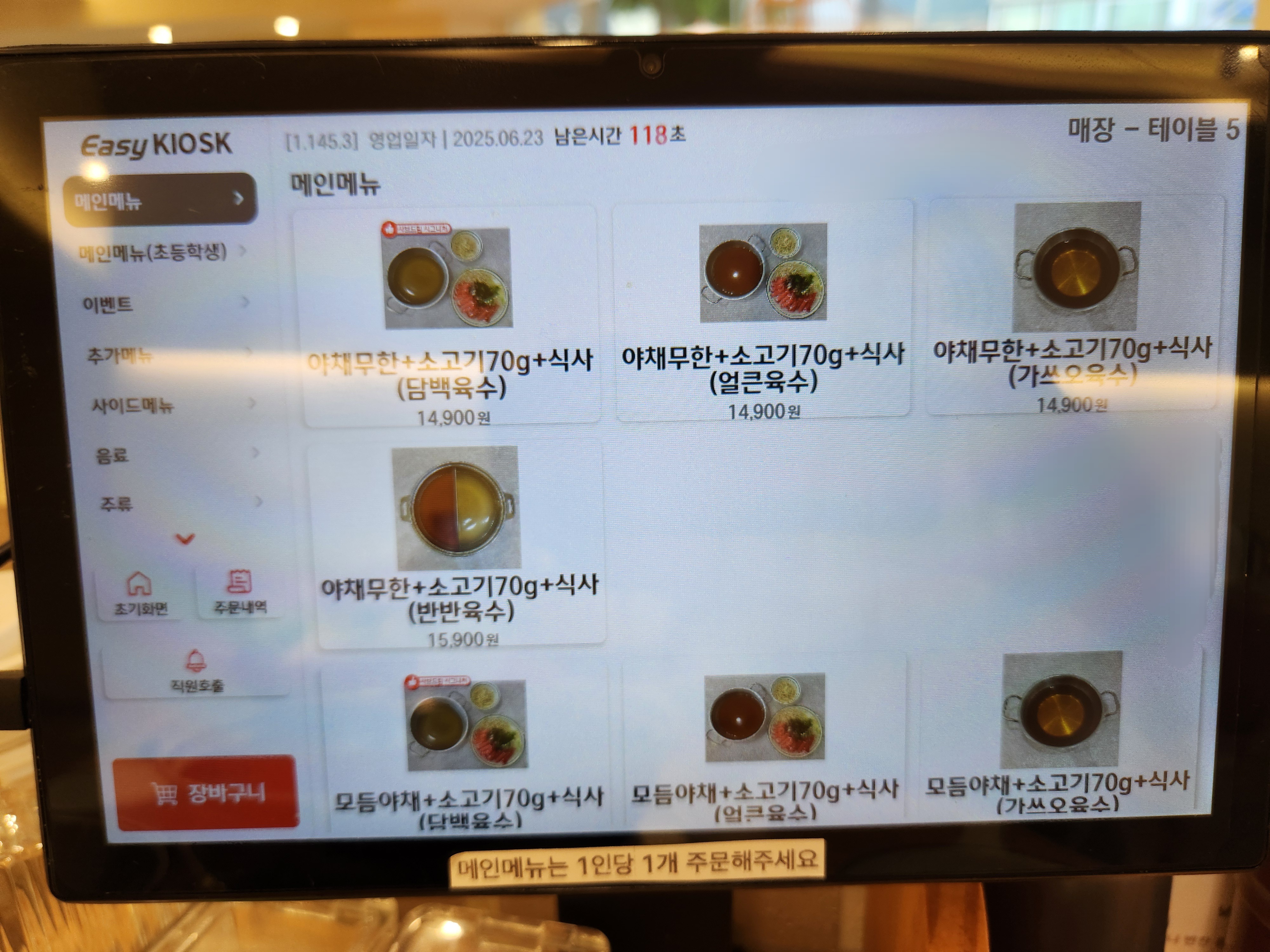 육수 선택 ▶ 메뉴 A나 B 중 선택 ▶ 식사 선택하시면 돼요.