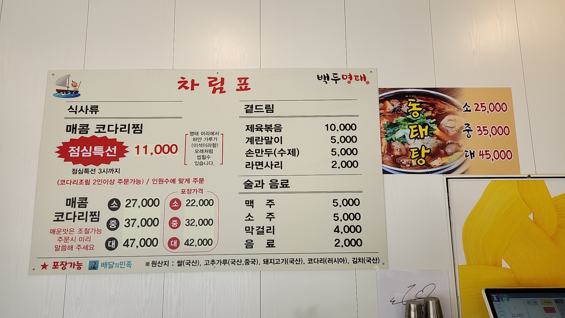 다른 메뉴로 동태탕이나 곁드림 메뉴도 있으니 참고하세요.